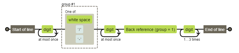 \d{1,2} sería válida para byte pero nos dejamos fuera del rango de 100 a 255.1\d{2} añadiría el rango de 100 a 199 dejando fuera de 200 a 255.\d, ya que si es 5 el tercer dígito solo podrá ir de 0 a 5. Luego 2[0-4]\d añadiría el rango de 200 a 249 dejando fuera de 250 a 255.25[0-5](\d{1,2}|1\d{2}|2[0-4]\d|25[0-5]) con lo cual la expresión final será...^(\d{1,2}|1\d{2}|2[0-4]\d|25[0-5])(\.(\d{1,2}|1\d{2}|2[0-4]\d|25[0-5])){3}$Nos queda una ER muy larga y ofuscada de leer, con partes repetidas y donde cometer un error es bastante sencillo. Una posible solución será definir los sub-grupos en variables separadas y así auto-documentar y simplificar quedando la función de arriba así.